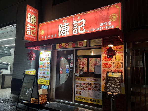 陳記はJR『田町駅』西口、都営地下鉄浅草線、三田線『三田駅』から歩いて10分ほどの場所にあります。
