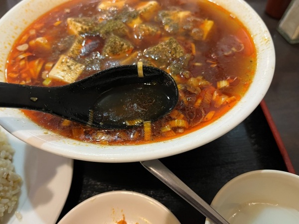 食べすすめていくと麻婆豆腐の餡の“とろみ”の部分や挽肉が出てきて味のアクセントになってます。