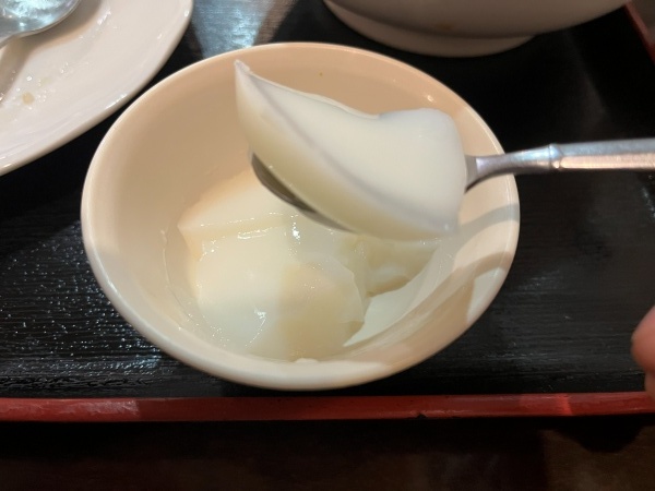 最後に絹ごし豆腐と手作りと思われる杏仁豆腐を食べて完食。