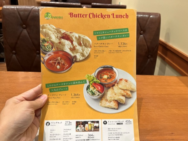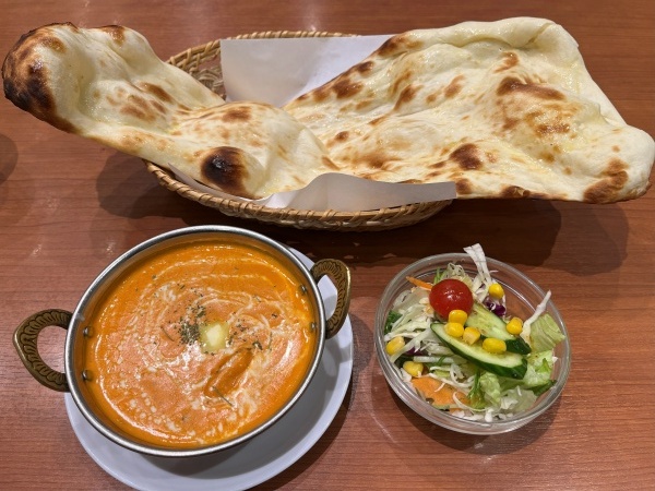 今回は、チーズナンではなくプレーンナン(バターナン)のバターチキンランチを選びました。