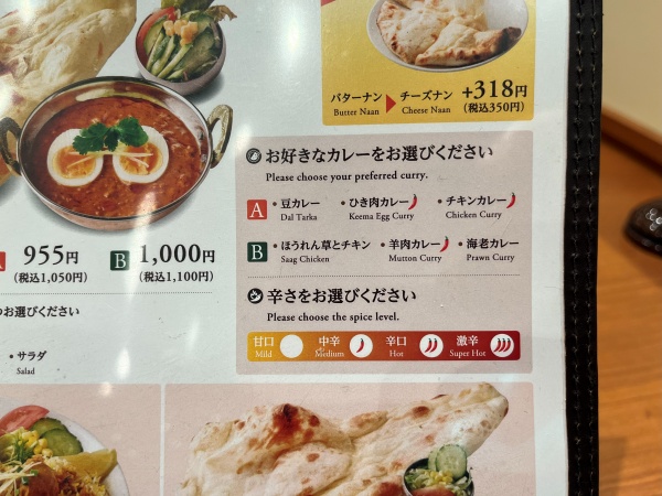 上記には、日本人に大人気なバターチキンカレーは入っていないのですが、バターチキンカレーが良いという方は下記のメニューから選べます。