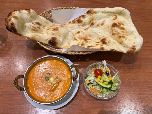 今回は、チーズナンではなくプレーンナン(バターナン)のバターチキンランチを選びました。