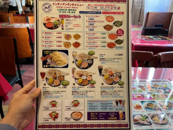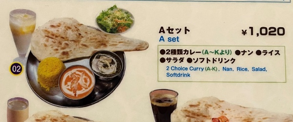 カレーセットがメインで、よく見るラインナップが揃っています。