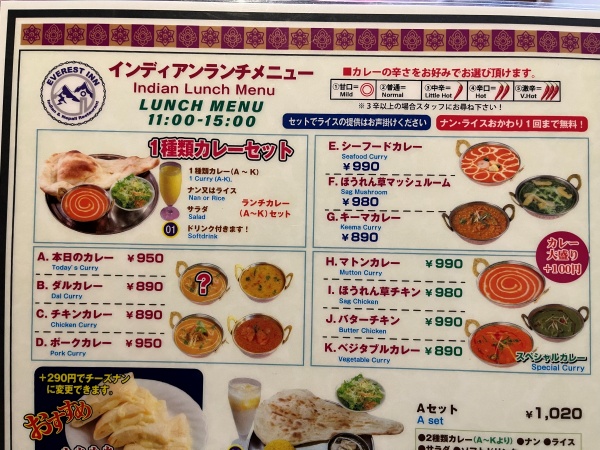 エベレストインさんのランチメニューラインナップを紹介!コスパ◎