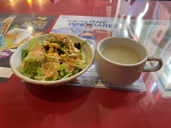 スープはメニュー表に無かったと思いますが、おそらくサービスでついてきたと思います。これはありがたい!