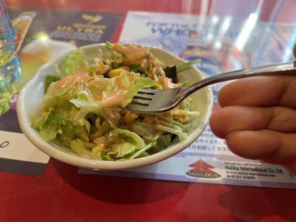ドレッシングはサウザンドレッシングに近い味で、そこにスパイスがプラスされているのかな?