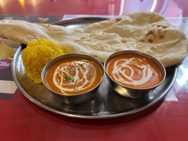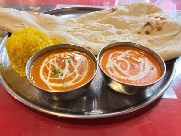 選べるカレーは『バターチキン』と『キーマ』を選択。辛さは『普通』、飲み物は『マンゴーラッシー』をチョイス。
