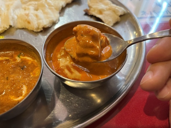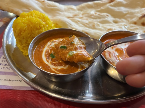 滑らかで甘味とコクがありながら、最後にしっかりスパイスを感じる重層的な味わいのバターチキンカレー。
