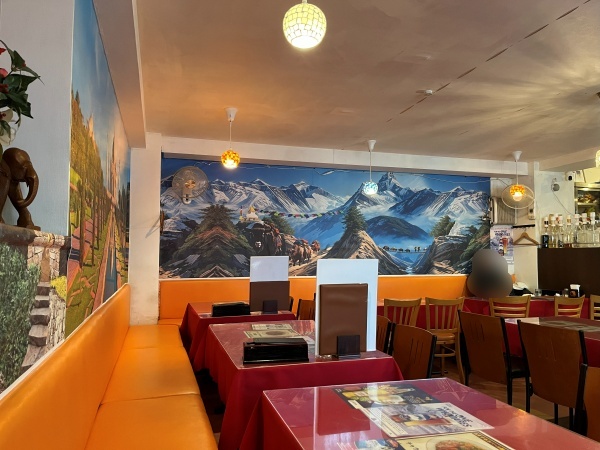 奥の絵はエベレストでしょうか?山の絵を飾ってあるインネパカレーのお店は多いですね。