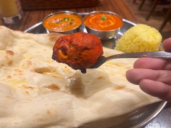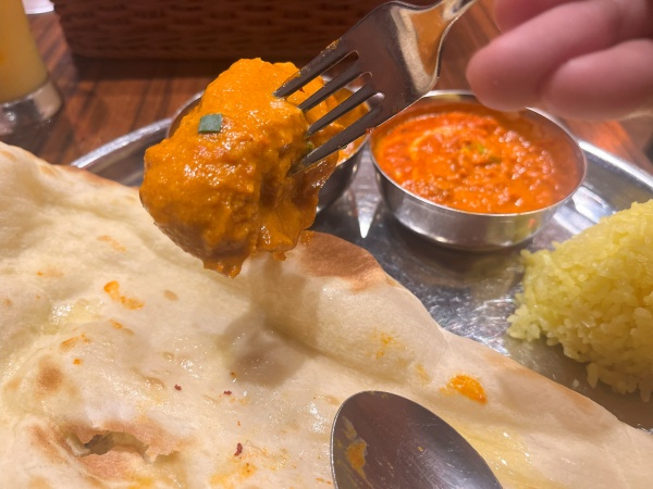 一口食べてみると、ヨーグルトに長時間漬けてあるのか、すっごく柔らかい食感!しかも香辛料の香りが豊かでスパイシー!