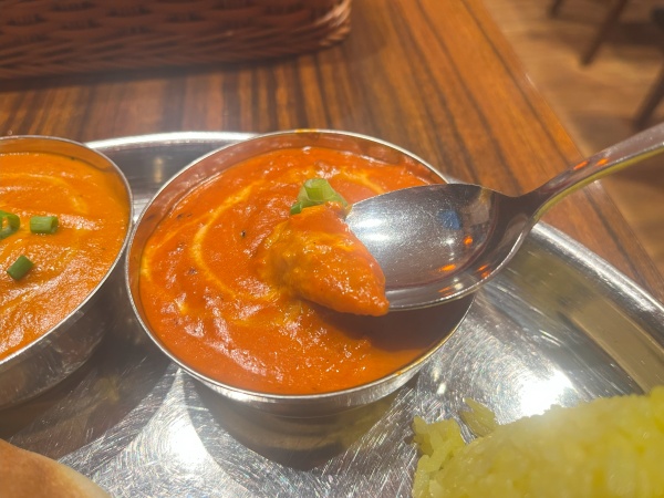 んぅ〜まろやかでコクと旨みが強い、日本人が好きな味ですね。挽肉はチキンと羊の両方が使われており、その分、旨味がプラスされ味に奥行きを出しています。