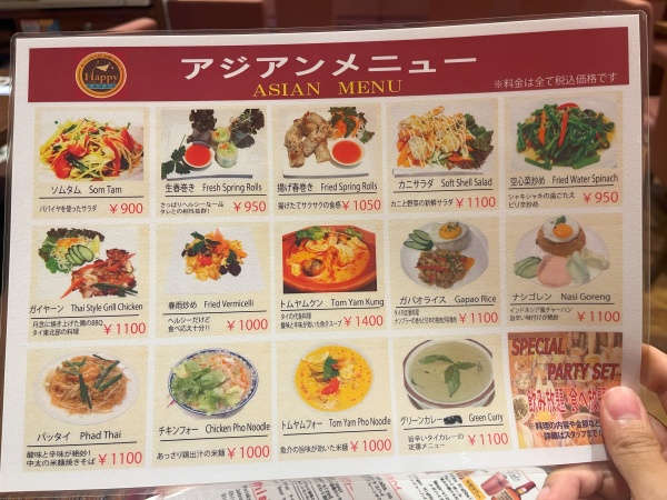 そして、トムヤムクン、チキンフォー、ナシゴレンなどのアジアンメニューも揃ってます。パッタイ食べたい〜!
