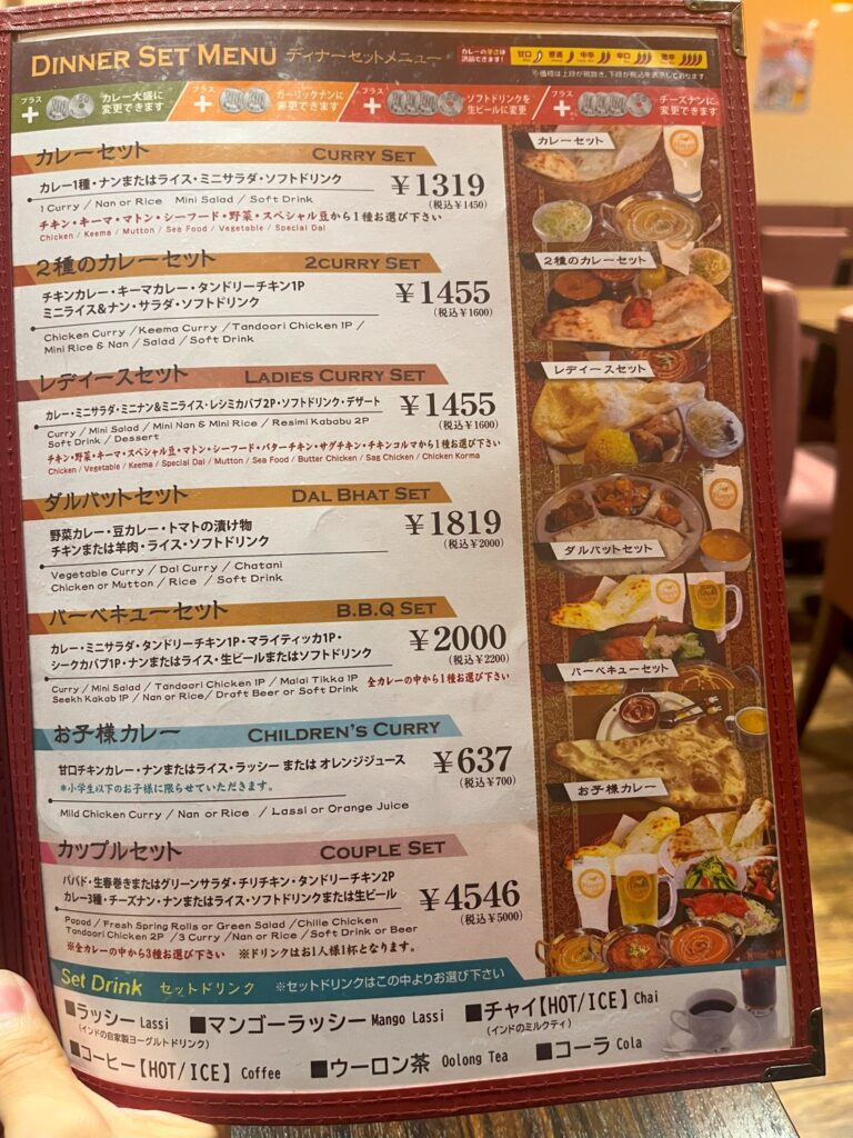 バーベキューセット以外のカレーセットは、カレーが自由に選べない代わりにお得な値段で食べれます。