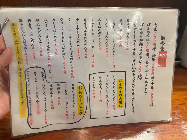ばんめんだけでも15種類あり、また、有料のトッピングもこんなに沢山↓