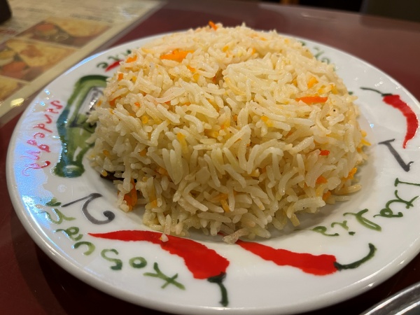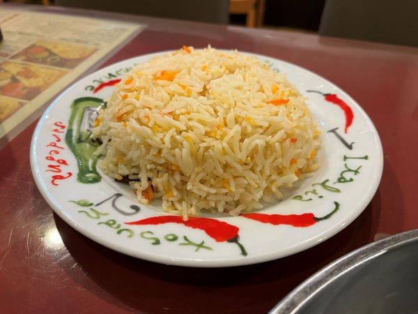 ラフィーさんのポラオライスはバスマティライスとニンジンのシンプルな具材になってます。