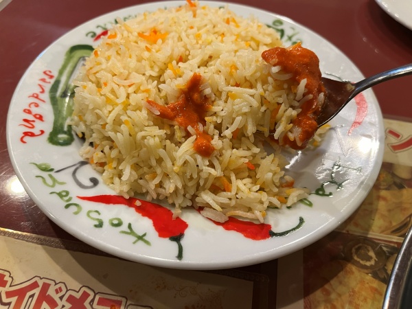 香辛料がほのかについているインディカ米で、バターチキンとの相性も良く美味しい!このインディカ米のパラパラ食感と独特な香りがやっぱりカレーと合いますね。