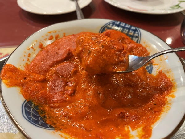 バターチキンカレーは彩度の高いオレンジ色であまり見たことない見た目をしてる↑