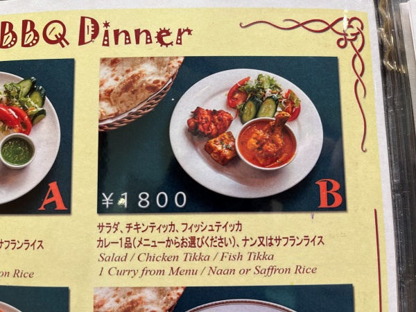 悩んだ挙句、フィッシュティッカもついてくるBセットにしました。カレーは恐らくバターチキンカレーと思われる『バターチキンマサラ』を選択。