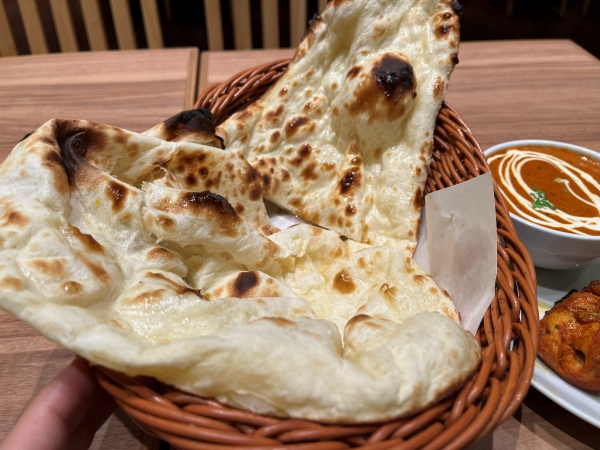 ナンはフワフワモチモチ系ではなく、しっかり生地の質感を感じるナン↓。