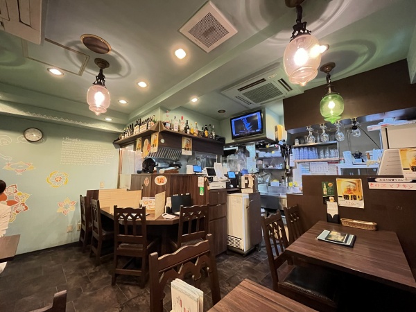 店内はそこまで広く無いですが、壁紙が水色で小洒落たカウンター席もあり可愛らしい内装のお店。