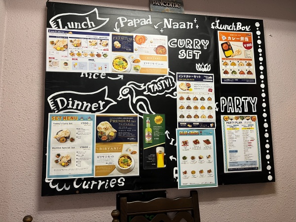 入り口前の踊り場にあるボードには、ムンバイさんのメニューが可愛らしいイラストと共に紹介されています。
