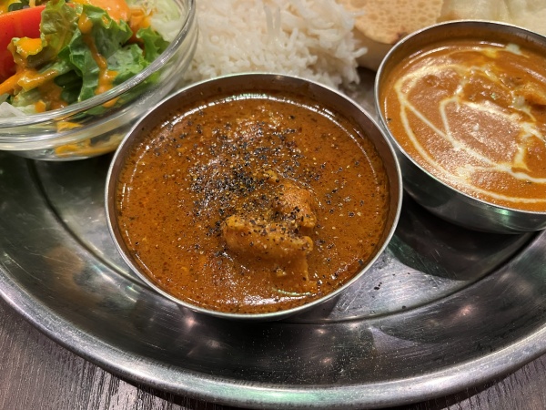 このセット、カレーは選べないですが、王道の『バターチキンカレー』と、気になっていた『ブラックペッパーチキン』という最強の組み合わせ。