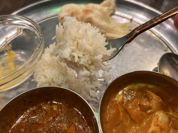 カレーが両方とも美味しそうですし、ご飯がターメリックライスでは無く、バスマティライス(インディカ米)が添えられています。