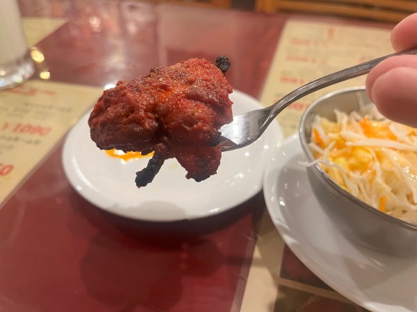 めちゃくちゃジューシーですっごく旨い!!表面にまぶされている香辛料のバランスがいいのか、表面のスパイスの旨みが凄い!