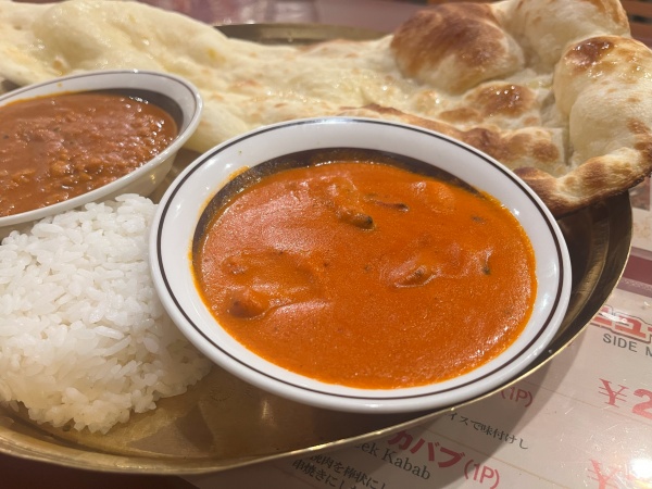 選べる2種のカレーは『バターチキン』と店員さんにオススメしてもらった『チキンキーマ』にしました。
