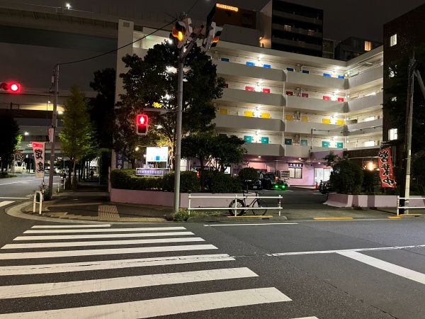 芝浦食堂は田町駅芝浦口(東口)を出て駅から真正面の通りを進んだ方向にあります。