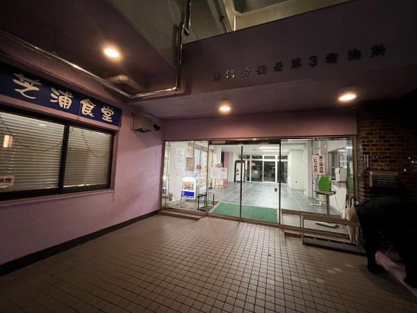 お目当ての芝浦食堂がありました。この港湾労働者第三宿泊所(むつみ荘)ですが、港湾労働者の福利厚生施設とのこと。