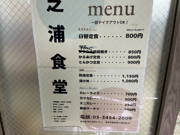 メニューラインナップは、さすが港湾労働者から愛される食堂という感じで、お刺身定食、とんかつ、からあげ、カツカレー、ラーメン、ポテトフライなど、皆大好きなオールスターが揃ってます。