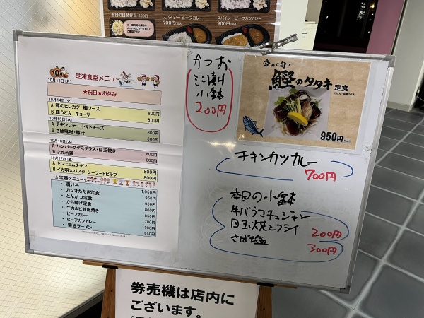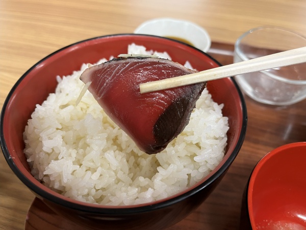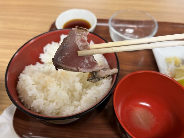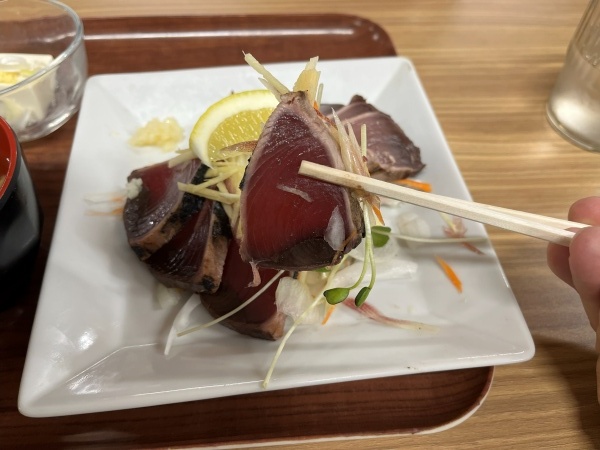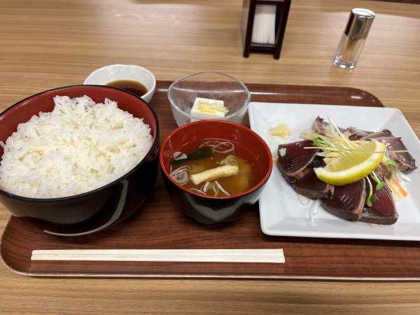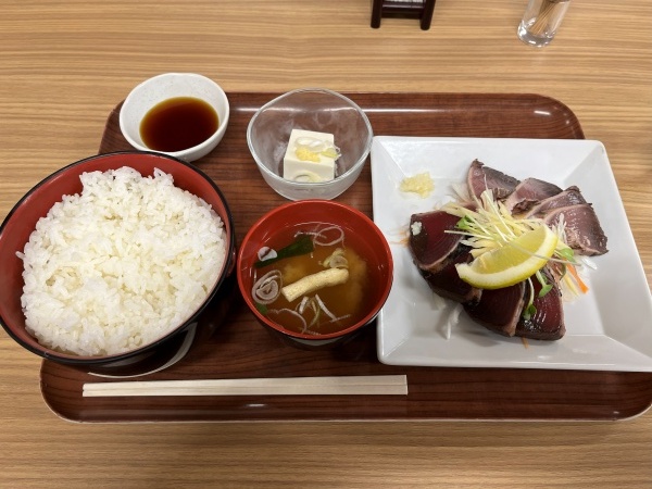 何にしようか悩んだのですが、やはり海の近くに来たので海鮮かなと思い『今が旬』と書かれている『鰹のタタキ定食』を選びました。