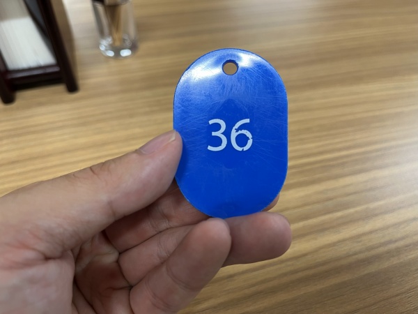 食券を渡すと番号が記載されたプラスチックの引き換えプレートが貰えるので番号が呼ばれるまで席で待ちます。