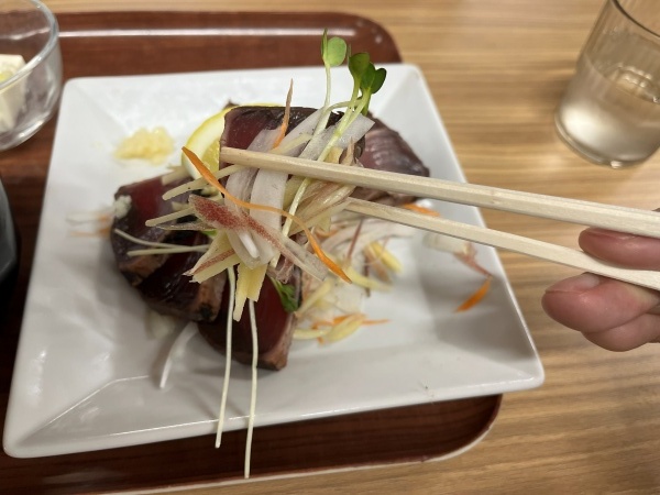 次はお待ちかね、メインの鰹のタタキを食べていきます。