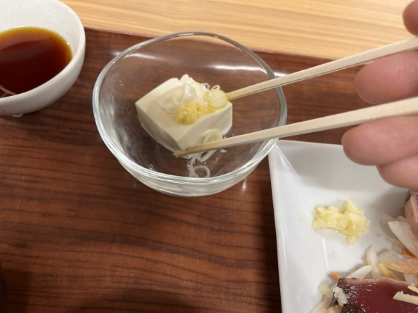 最後に絹ごしの豆腐を食べて口の中をさっぱりさせます。