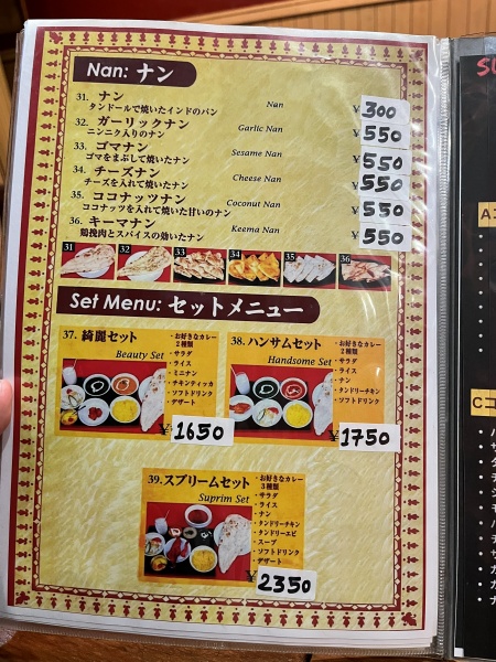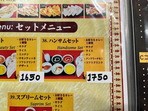 セットメニュー名は『綺麗セット』『ハンサムセット』と独特なセンス笑