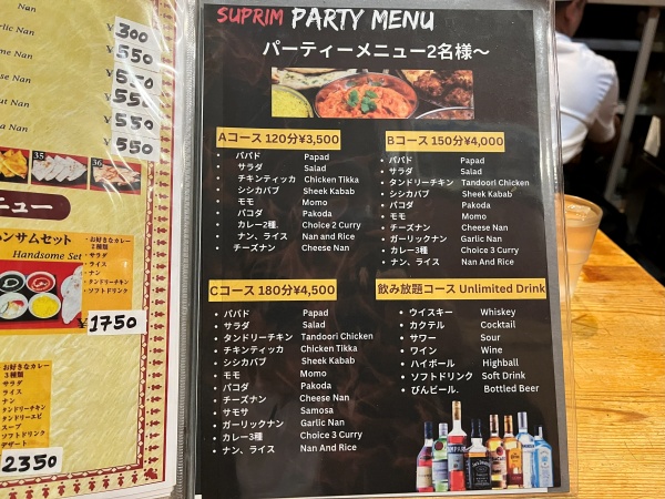ちなみに、パーティ向けのコースメニューもありました。