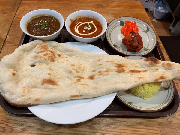選べる2種類のカレーは『バターチキンカレー』と『マトンカレー』をチョイス。ソフトドリンクは『ラッシー』に決めました。
