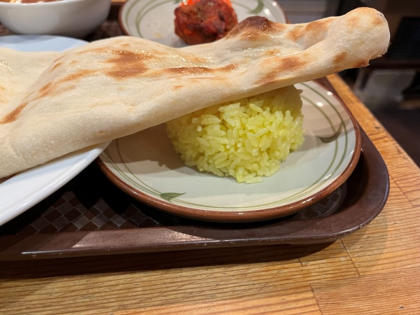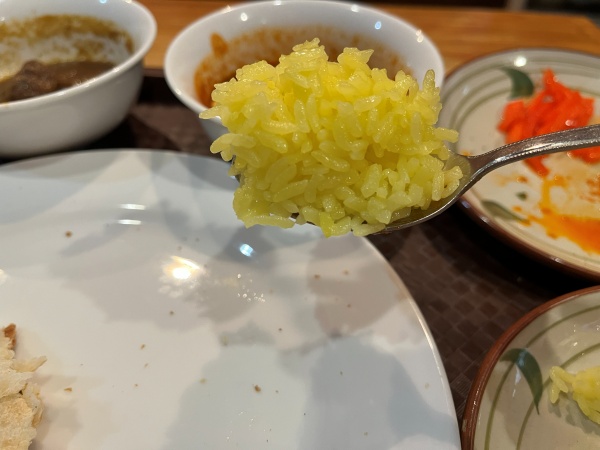 ちなみに、セットについてくるターメリックライスはジャポニカ米が使われているのでモチモチのお米でした↓