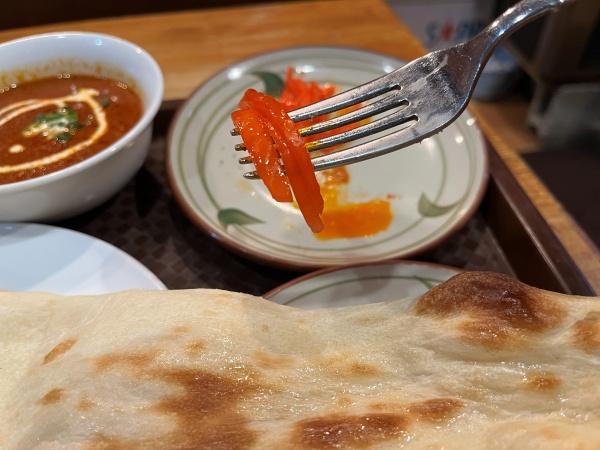 そして、チキンティッカの横に鎮座している漬物(アチャール)も食べていきます。