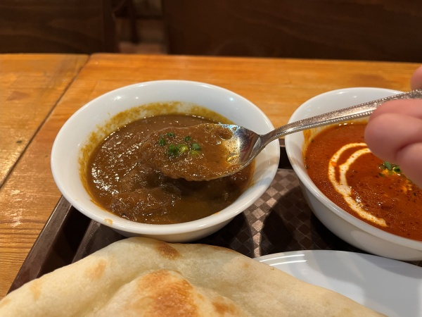 このマトンカレー、結構辛くてスパイシーですが、マトン肉は口の中でホロリと崩れるほど煮込まれていてお肉の甘味も感じる。