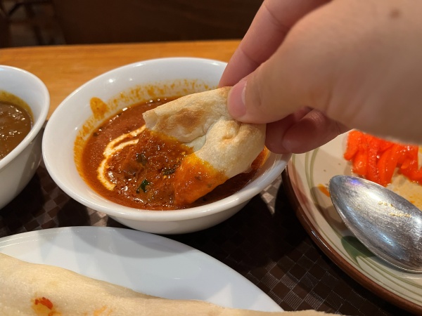 しっかりした生地で硬めだけど、甘味を感じるナン。例えるならオールドタイプのピザの端っこの様な食感。