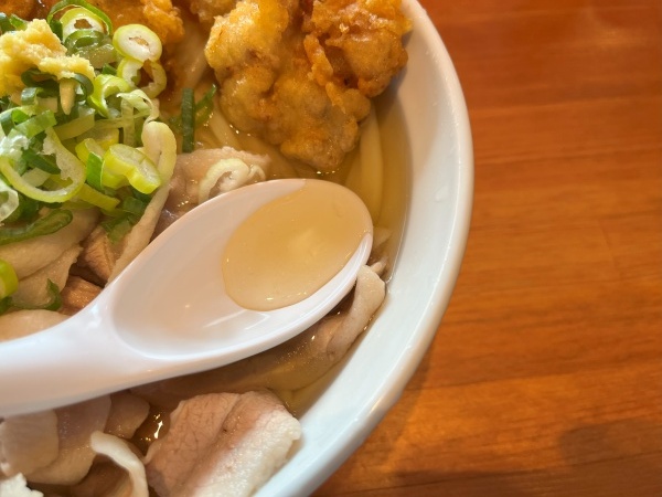 レンゲですくって一口飲んでみると、魚介系の上品な出汁で美味いぃぃ!煮干し特有のえぐみを一切感じず、透き通るクリアな出汁で淀みなくスーッと喉に入ってきます。美味しすぎて何度も飲んでしまう、、出汁だけ販売して欲しいと思えるほど旨い!