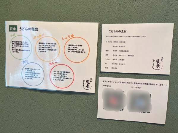 『うどん 辰未』さんのうどんのコンセプトですが、公式SNSを拝見すると讃岐と武蔵野をミックスしたハイブリッドなうどんとの事。
